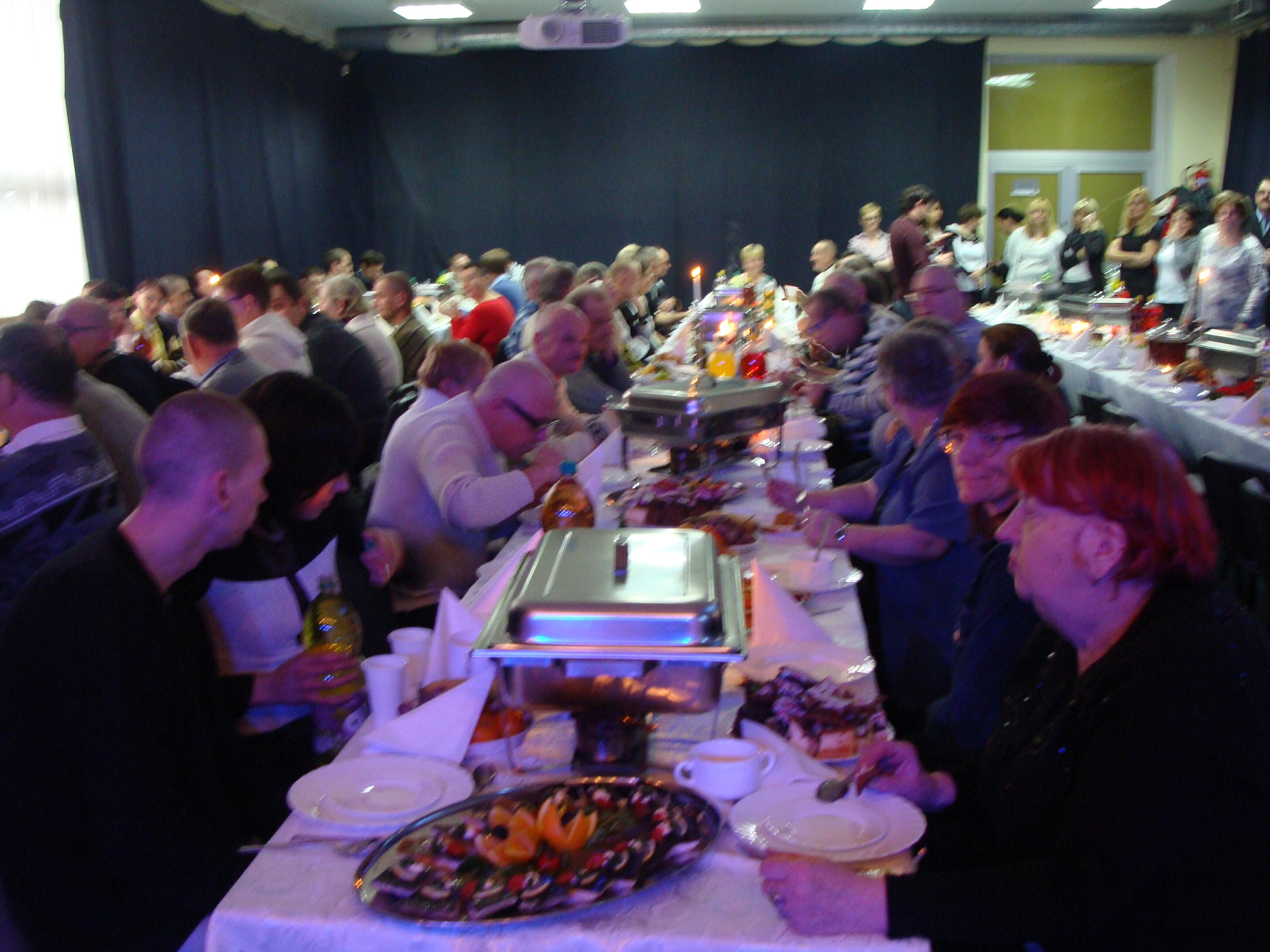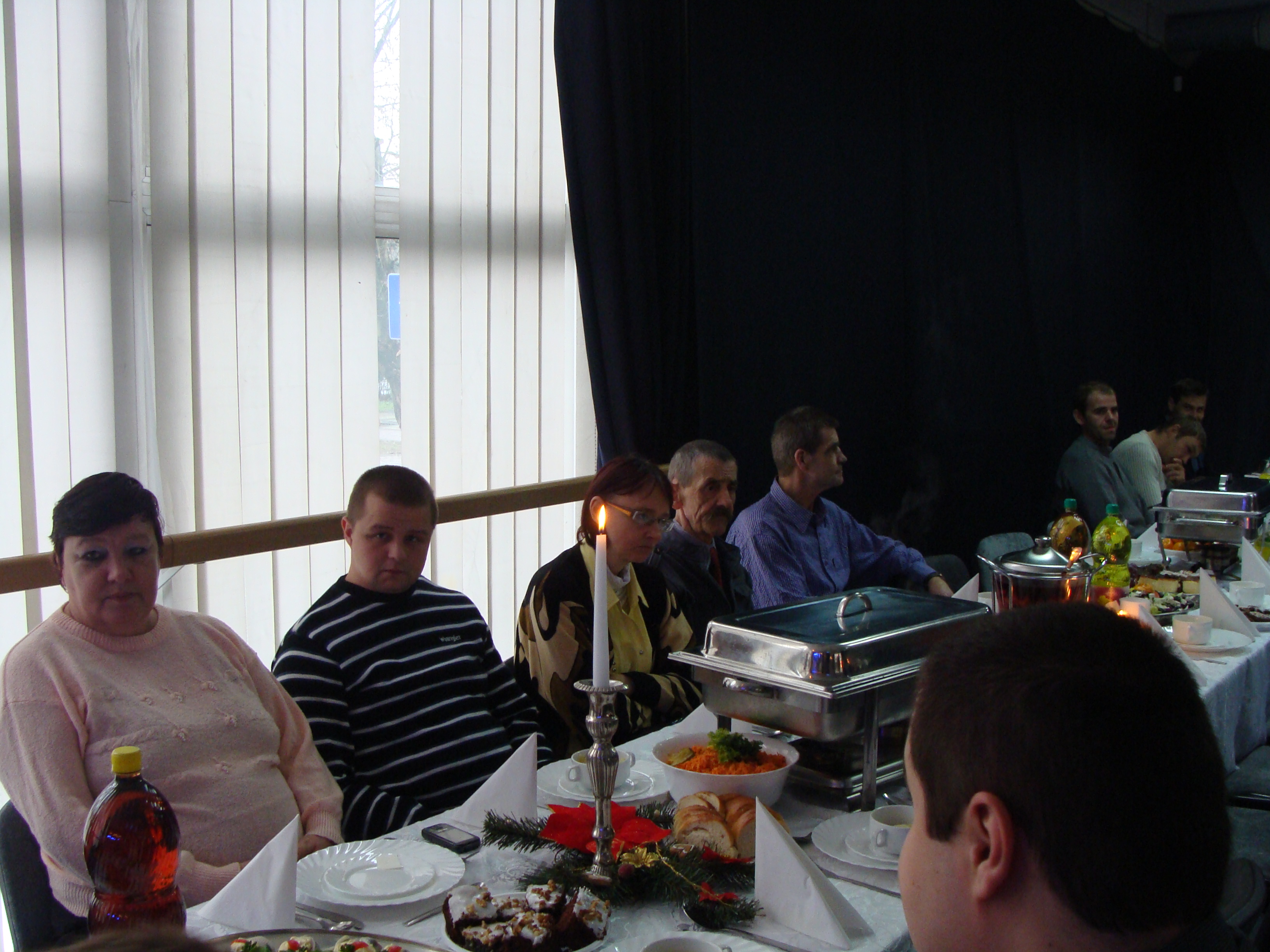Spotkanie Wigilijne (2015-12-23) Dnia 18 grudnia 2015 roku w Ośrodku Kultury Sportu i Rekreacji w Świeciu odbyło się spotkanie wigilijne dla mieszkańców gminy Świecie. Spotkanie skierowane było w szczególności dla osób samotnych, bezdomnych oraz uczestników Środowiskowego Domu Samopomocy dla Osób z Zaburzeniami Psychicznymi w Świeciu. Uroczystość ta zorganizowana została przez pracowników OPS w Świeciu oraz kierownika Schroniska dla Osób Bezdomnych. Pracownicy Środowiskowego Domu Samopomocy w Świeciu wraz z uczestnikami przygotowali na ten dzień ciasta ( pierniki, serniki, jabłecznik i upominki dla dzieci, które przedstawiły jasełka ). Dziękujemy dzieciom i nauczycielom z przedszkola nr 9 ,,Pod Klonem” w Świeciu za przepiękne przedstawienie, które nadało spotkaniu wyjątkową atmosferę. Przyniosło wiele wzruszeń. Dziękujemy panu Tobiaszowi Staniszewskiemu za przepiękne wykonanie trzech utworów muzycznych, które przeniosły wszystkich w świat łagodności, spokoju i wyciszenia. Dziękujemy dyrektorowi OKSiR w Świeciu za udostępnienie sali lustrzanej.