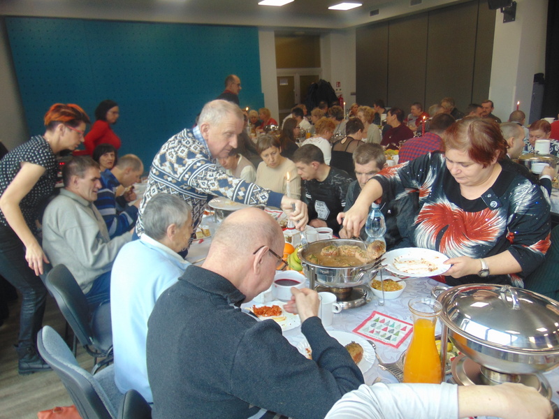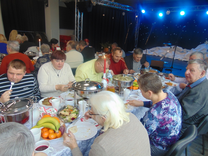 Wigilia 2017 r. (2017-12-20) W dniu 18.12.2017r. w Ośrodku Kultury Sportu i Rekreacji w Świeciu odbyło się spotkanie wigilijne dla mieszkańców gminy Świecie, w którym uczestniczyli również seniorzy biorący udział w projekcie „Do seniora z czułością i cierpliwością”, osoby samotne, bezdomne, niepełnosprawne oraz uczestnicy Środowiskowego Domu Samopomocy dla Osób z Zaburzeniami Psychicznymi w Świeciu. W uroczystości uczestniczyli również zaproszeni goście: Wiceburmistrz Pan Krzysztof Kułakowski, Zastępca Przewodniczącego Rady Miejskiej Sławomir Siemaszko, proboszcz parafii pw. Niepokalanego Poczęcia Najświętszej Maryi Panny w Świeciu ksiądz Leszek Grzela oraz radni: Pan Maciej Chareński oraz Pan Bogdan Tarach. |