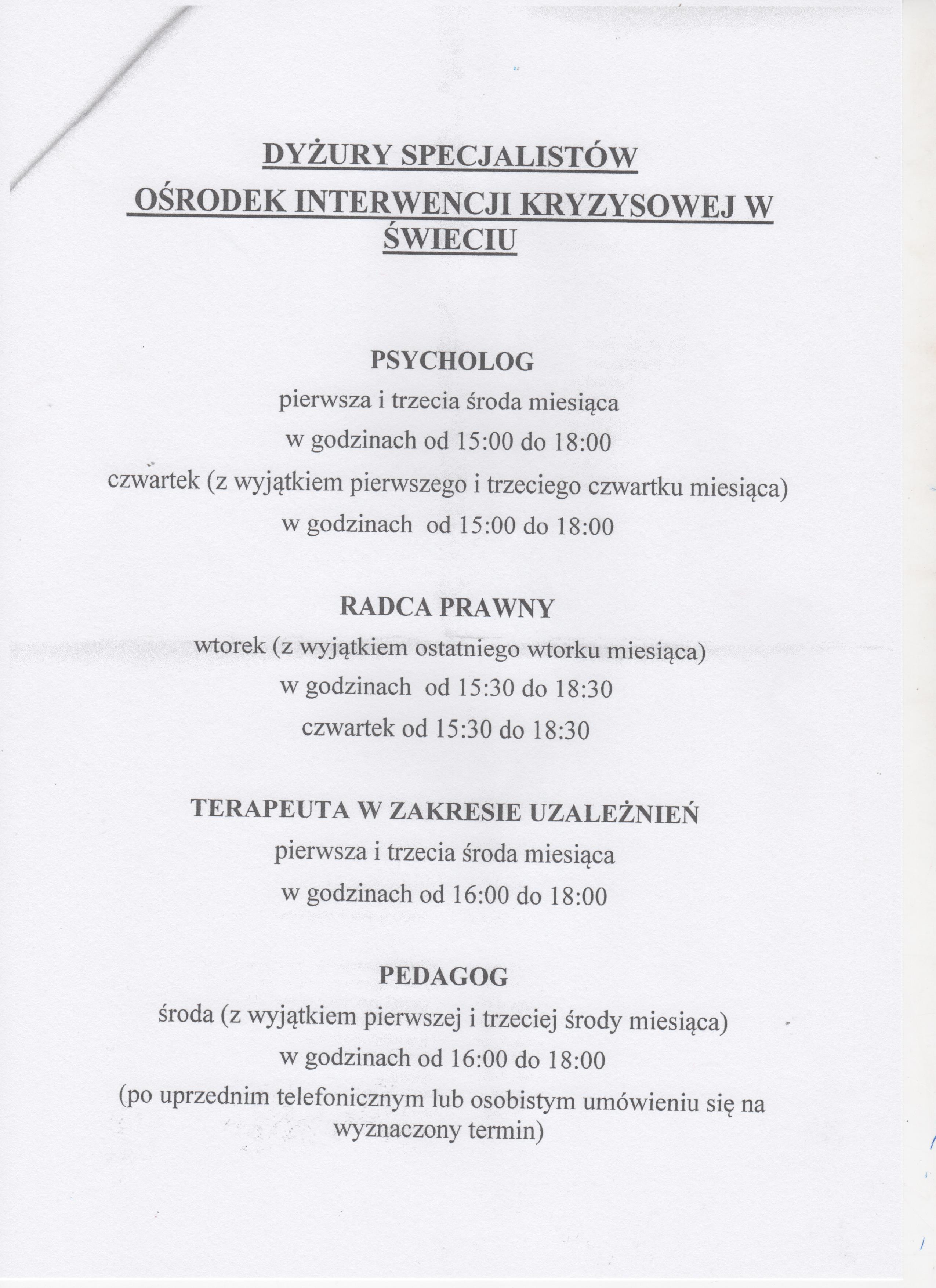 Informujemy, iż w Ośrodku Interwencji Kryzysowej w Świeciu ul. Sądowa 18 mieszkańcy Powiatu Świeckiego mogą uzyskać pomoc w postaci bezpłatnego poradnictwa w ramch interwencji kryzysowej stanowiącej zespół interdyscyplinarnych działań na rzecz osób i rodzin będących w kryzysie.