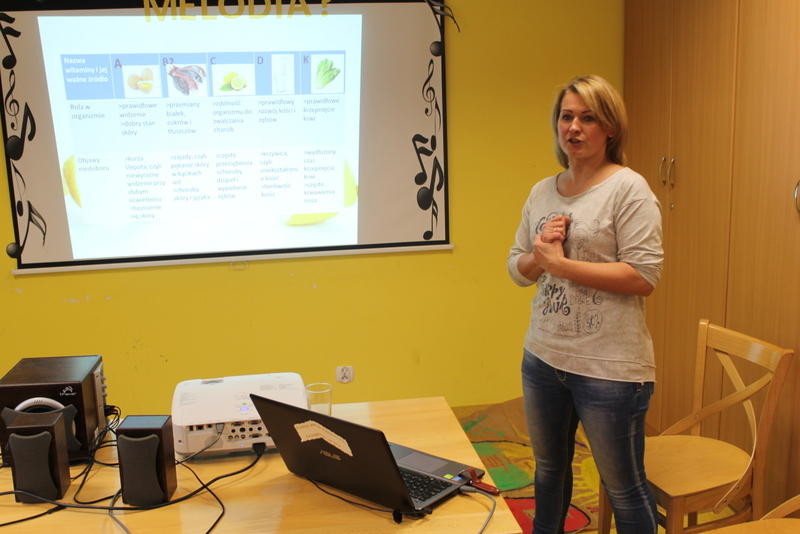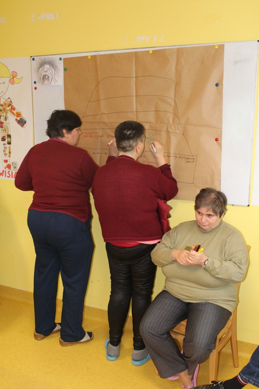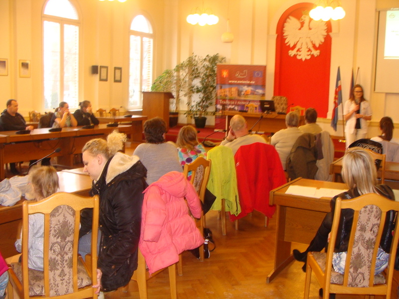 Zajęcia poprowadziła pani instruktor terapii zajęciowej Dorota Macikowska w Środowiskowym Domu Samopomocy dla Osób z Zaburzeniami Psychicznymi w Świeciu. Ponadto została przeprowadzona prelekcja przez specjalistów dietetyków z NATUR HOUSE w Świeciu przez panią Martę Rink i Jolantę Stempień w celu uświadomienia naszym podopiecznym pozytywnych skutków zdrowego odżywiania. Prelekcja została przeprowadzona w siedzibie Urzędu Miejskiego w Świeciu.