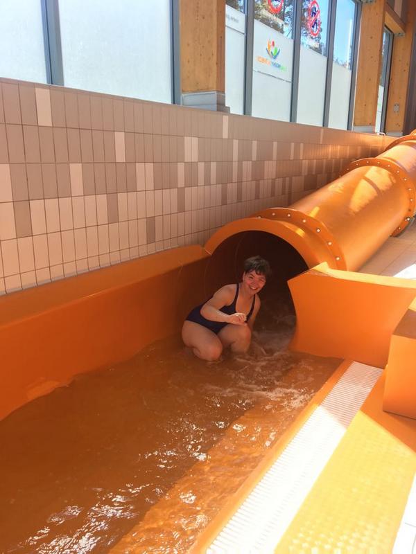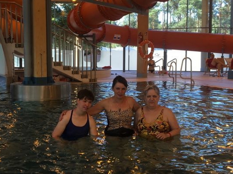 W ramach projektu "Usługi połeczne - dla każdego!" beneficjenci regularnie uczestniczą we wspólnych wyjściach na basen i grotę solną.