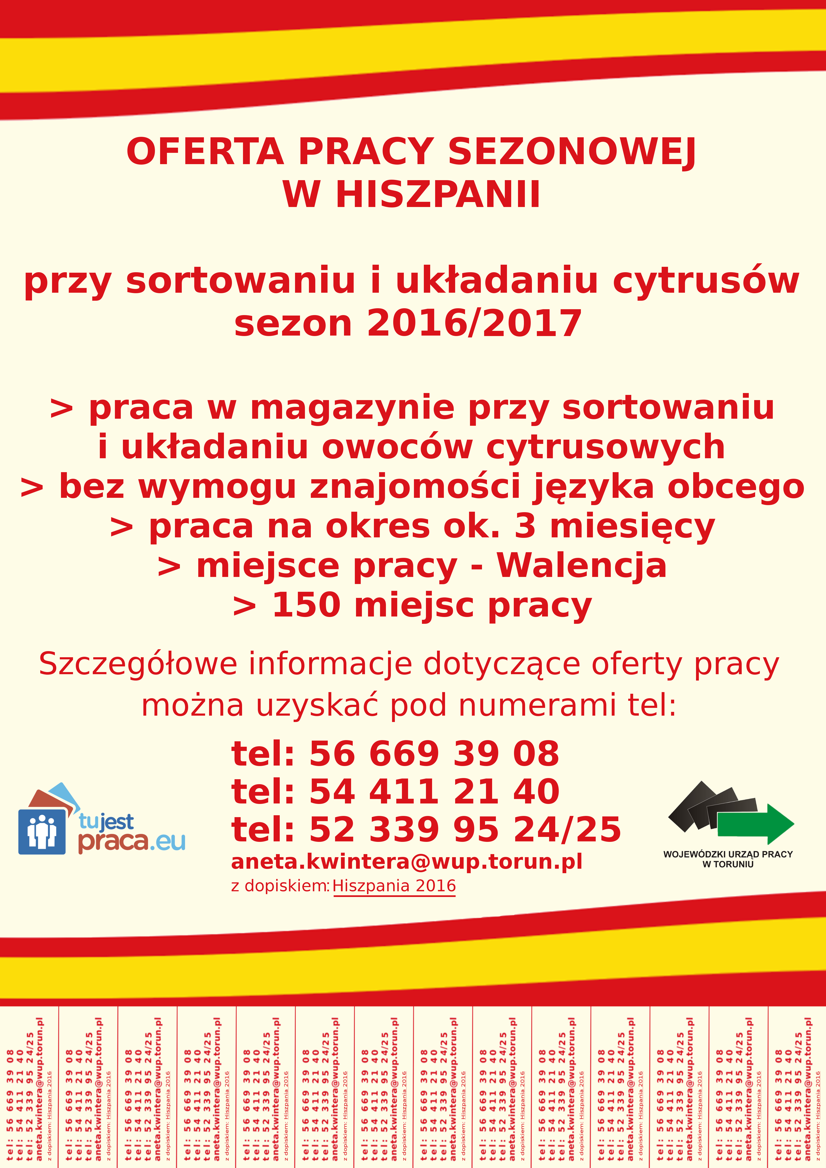 Ogłoszenia > Interesujące - Szkolenia, kursy, praca Praca sezonowa do Hiszpanii czytaj więcej....plakat