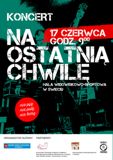 Dnia 17 czerwca 2016 r. odbędzie się koncert zespołu rokowego „Na ostatnią chwilę” oraz prezentacja sytuacji i zdarzeń wynikających z występowania wszechobecnych trucizn, jakimi są alkohol, narkotyki i dopalacze.