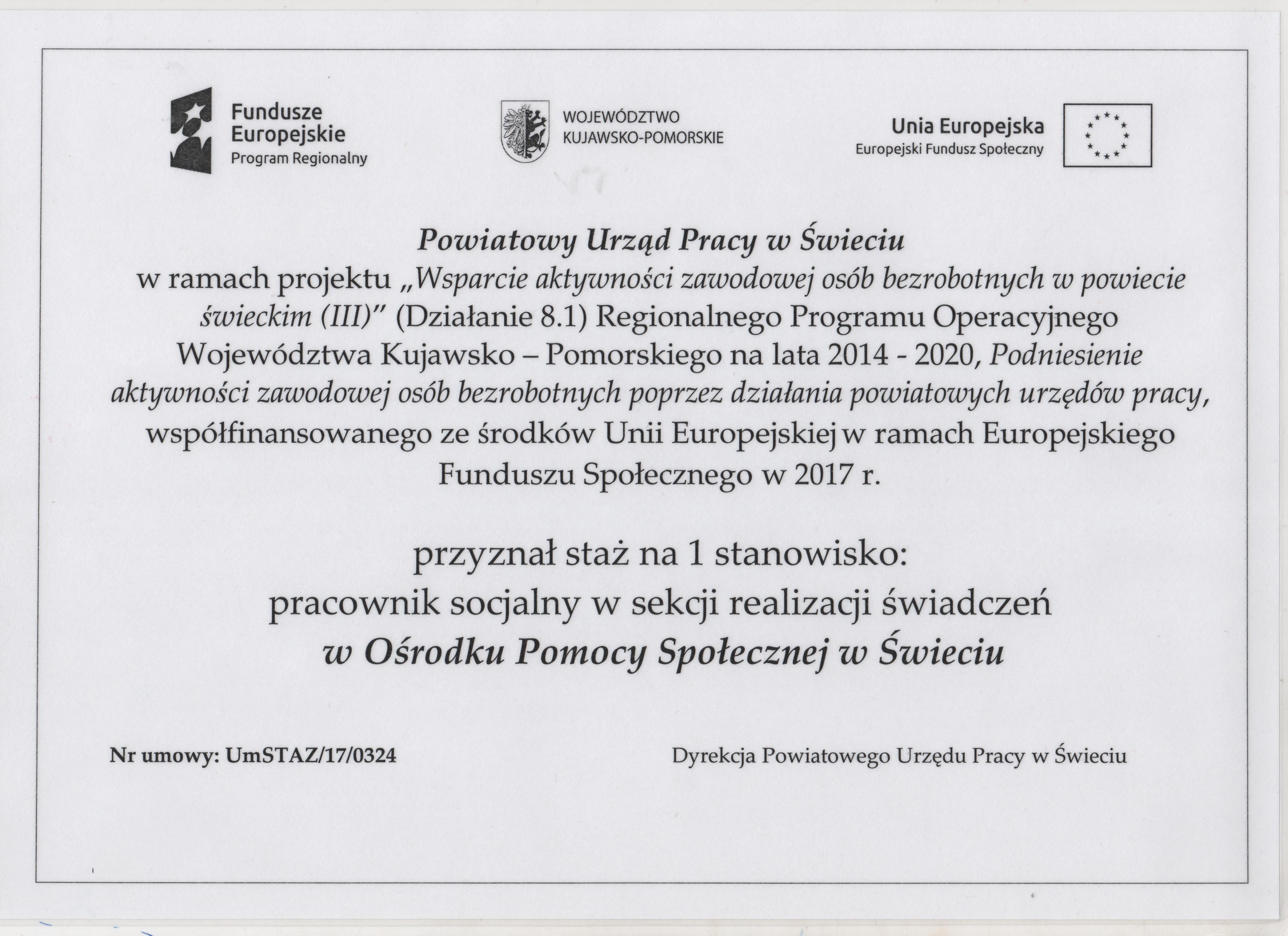 EFS- RPO W K-P 2014-2020 ,,Usługi społeczne- dla każdego!"