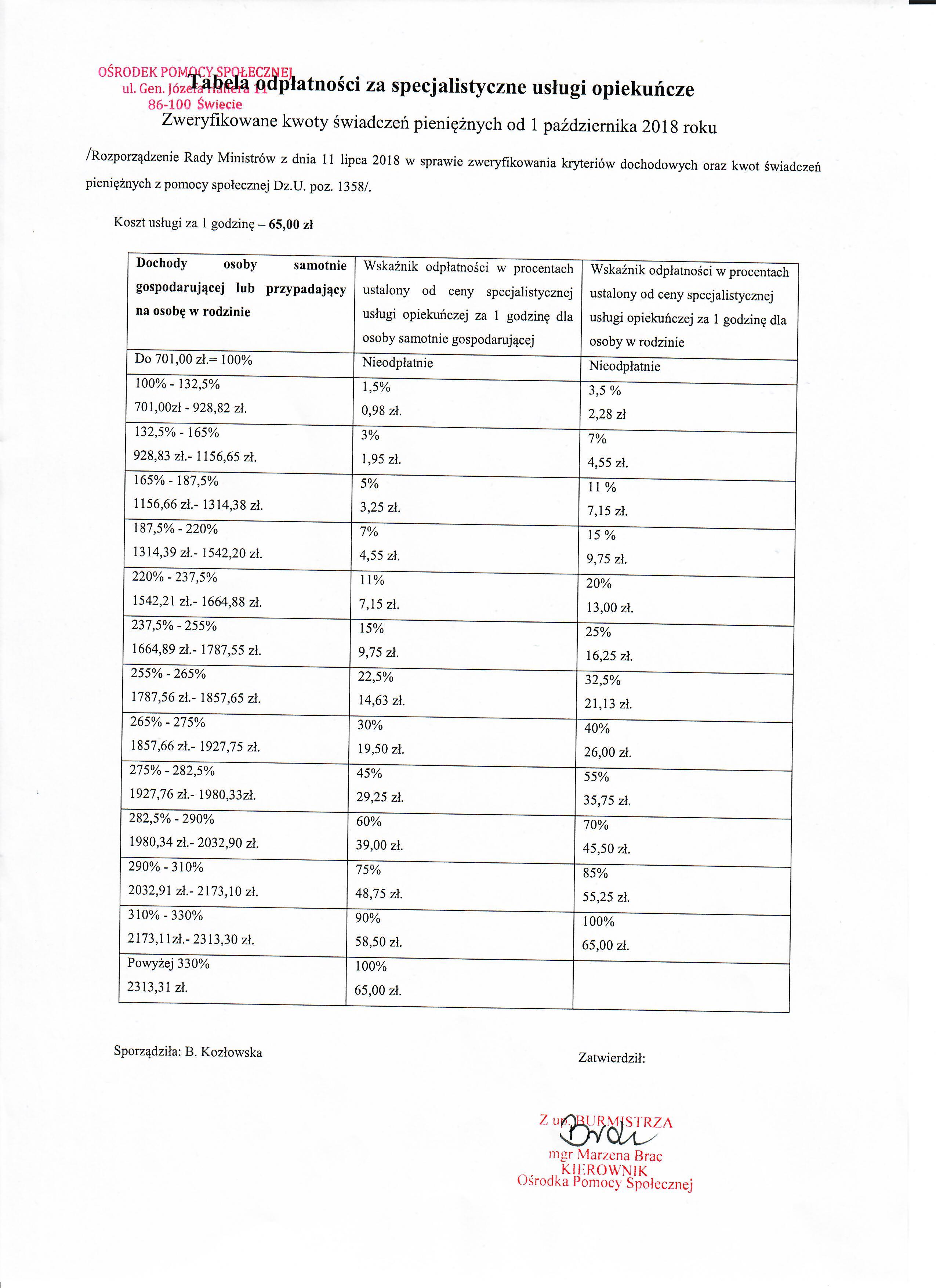 Uchwała nr 226/17 Rady Miejskiej w Świeciu z dnia 30 marca 2017 roku zmieniająca uchwałę w sprawie ustalenia szczegółowych warunków przyznawania i odpłatności za usługi opiekuńcze i specjalistyczne usługi opiekuńcze, z wyłączeniem specjalistycznych usług opiekuńczych dla osób z zaburzeniami psychicznymi oraz szczegółowych warunków częściowego lub całkowitego zwolnienia z opłat, jak również trybu ich pobierania.
