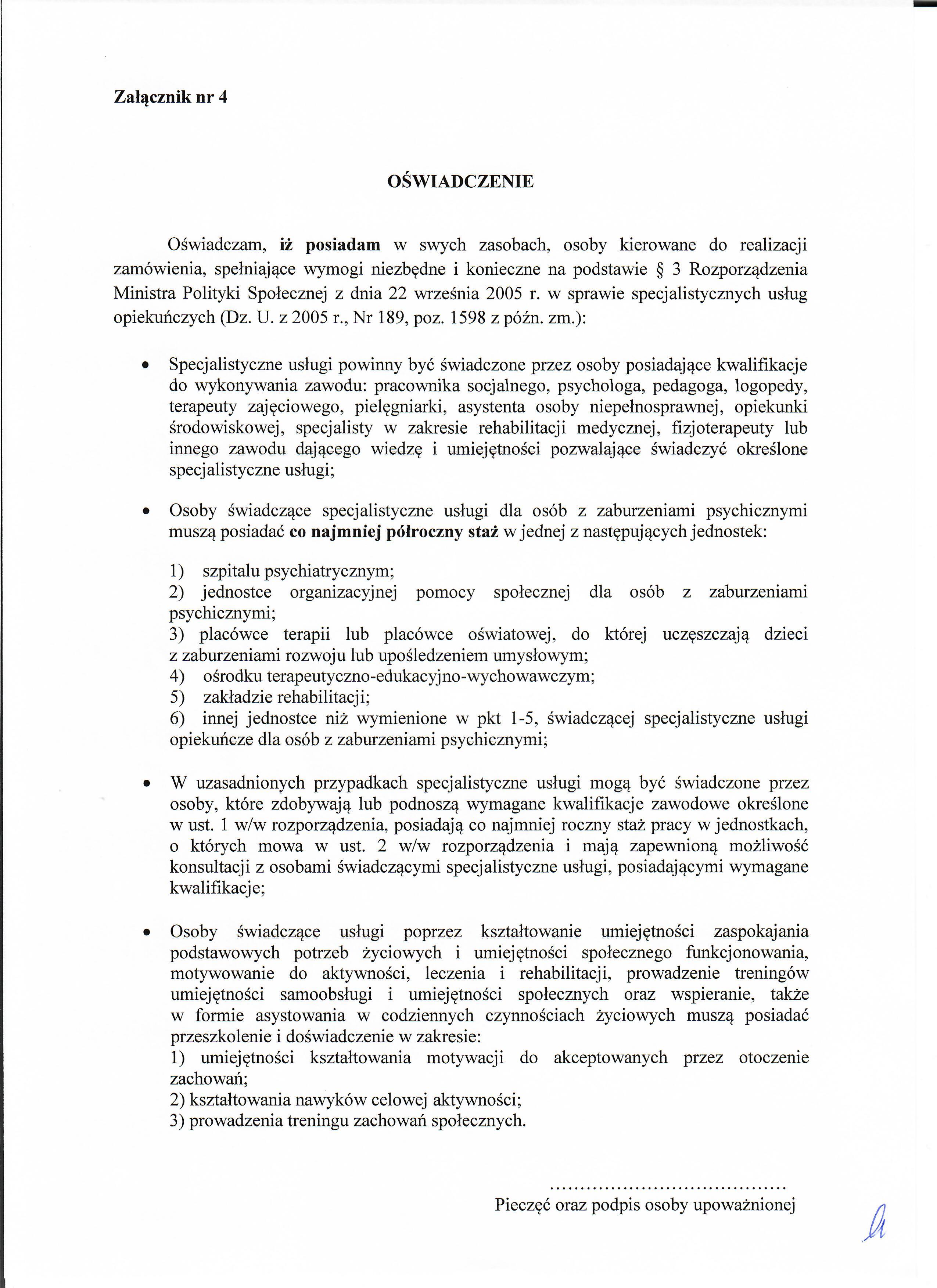 Świecie, 02.05.2018r. OGŁOSZENIE O ZAMÓWIENIU NA USŁUGI SPOŁECZNE NR 1/US/2018 NA ŚWIADCZENIE SPECJALISTYCZNYCH USŁUG OPIEKUŃCZYCH DLA OSÓB Z ZABURZENIAMI PSYCHICZNYMI. |