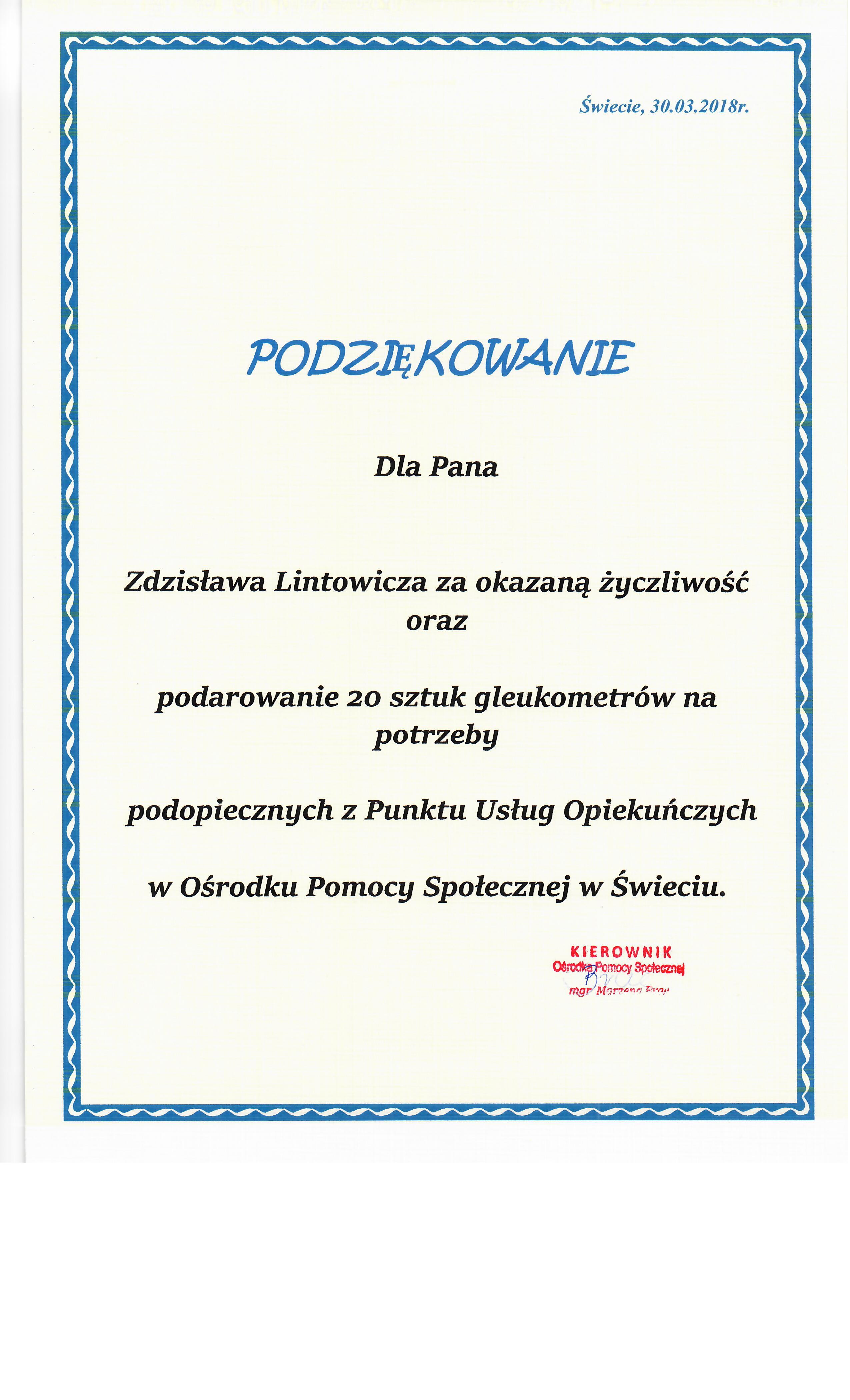 Podziękowanie...dla pana Zdzisława Lintowicza (2018-03-30)